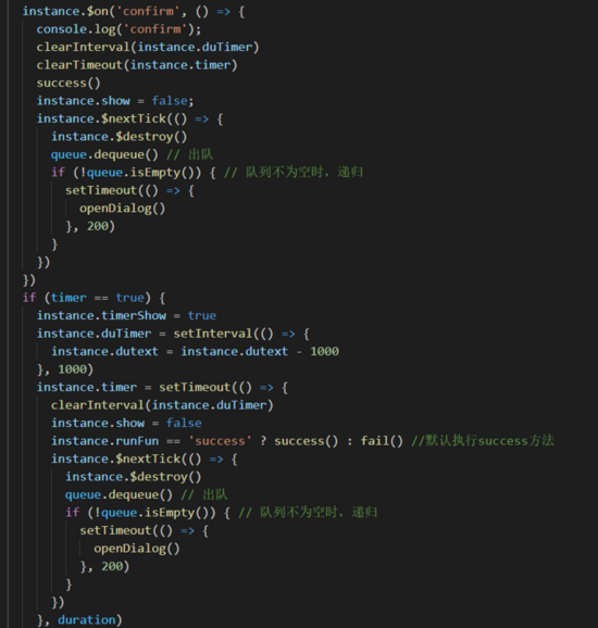 由于业务需要,需要在封装的弹窗组件中引入定时器实现倒计时效果,但是如果同时触发两个弹窗,就会导致计时器bug,前一个弹窗的定时器没有被清除,倒计时就会错乱,此时想到的解决办法就是采用队列模式,将每一个需要的弹窗存到队列中,依次的将弹窗展示出来,同时清除定时器