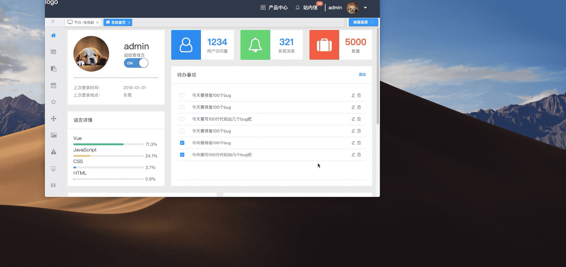 此开发框架是github 名为 lin-xin 的 vue-manage-system