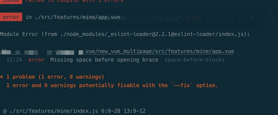 运行 npm run lint 会给出报错,运行 npm run serve 也会对项目进行eslint校验,无法通过校验就会报错