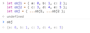 const arr1 = [0, 1, 2]; const arr2 = [3, 4, 5]; const arr = [...arr1, ...arr2]; // arr => [0, 1, 2, 3, 4, 5];