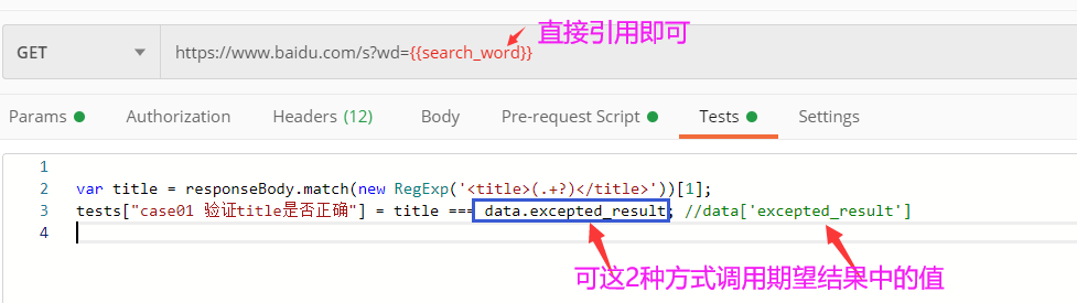 二、输入参数和期望结果在postman中的用法: