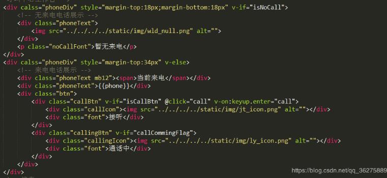 在弹窗打开的时候,初始化init事件。需要控制暂无来电图片、接听按钮和通话中按钮的显示与否