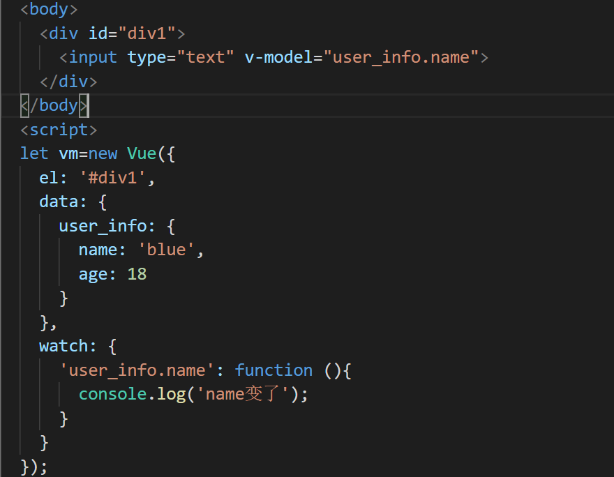 3.监听的函数接收两个参数,第一个参数是最新的值;第二个参数是输入之前的值;