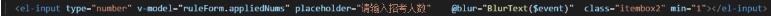 在这里呢使用的就是elementUI的事件了,我们监听一下失去焦点的时候要触发事件,同样的我们要传入进去$event参数