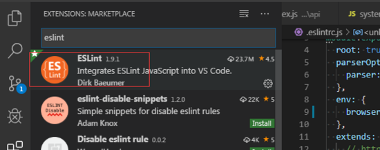 这个时候可以安装vscode eslint插件,就可以自动检测不符合规范的代码。打开vscode左侧扩展面板,搜索eslint,点击安装,重启后生效