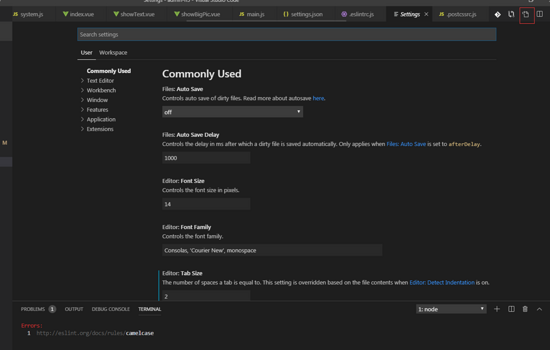 通过 file->preferences->Settings 出现如下界面: