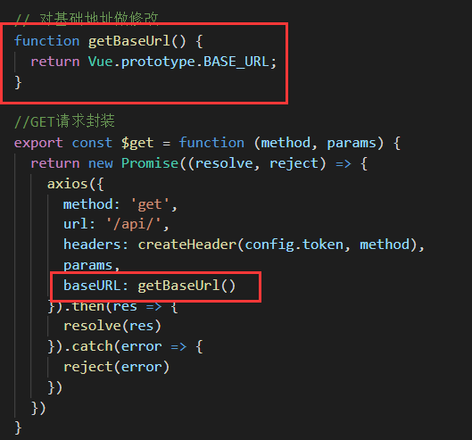 解决方法:相信我们的项目中都对请求进行了一些封装操作,只要将对应的baseURL的值改成实时获取Vue.prototype.BASE_URL的值,就可以保证接口请求能够准确获取到了~