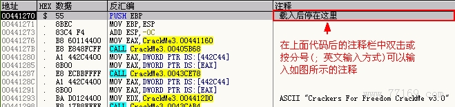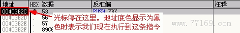 我们所看到的那些 PUSH EBX、 PUSH ESI 等都是调用子程序保存堆栈时用的指令,不用管它,按 F8 键一步步过来,我们只关心关键部分: