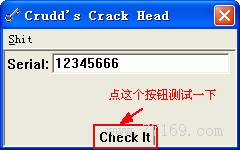 呵,竟然没找到输入注册码的地方!别急,我们点一下程序上的那个菜单“Shit”(真是 Shit 啊,呵呵),在下拉菜单中选“Try It”,会来到如下界面: