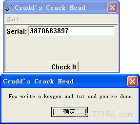 00401361 |. 68 0F304000 PUSH CrackHea.0040300F ; Title = "Crudd's Crack Head"