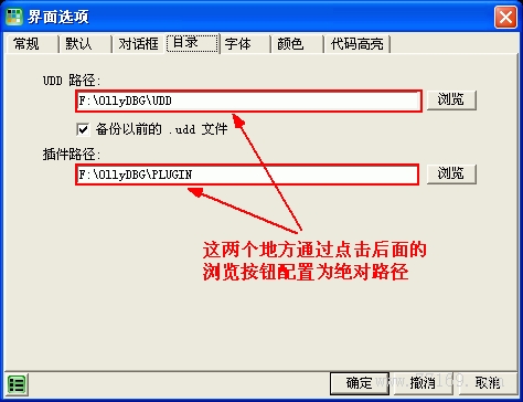 如果不设置这个 UDD 目录,OllyDBG 默认是在其安装目录下保存这些后缀名为 udd 的文件,时间长了就会显的很乱,所以还是建议专门设置一个目录来保存这些文件。