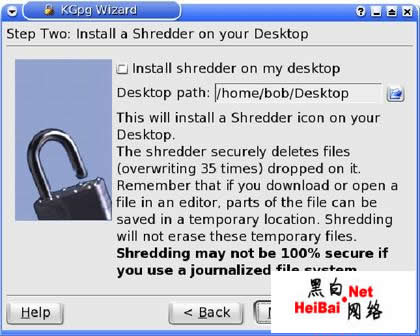 这一步将在你指定的位置安装一个文件粉碎机的图标。点击下一步按钮继续,下一个对话框,第三步是准备创建你的密钥对盒子
