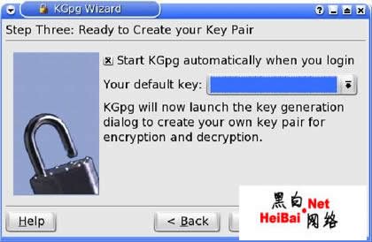 我不想Kgpg在我登陆时自动创建密钥对,当我准备加密某些东西时我将点击Kgpg图标来开始创建,因此我去除了这个记号标记。在Mandrake中我可以在一个文件上右击选择加密,然后Kgpg就启动了,正如你希望的并不是每天都需要对文件或email进行加密。