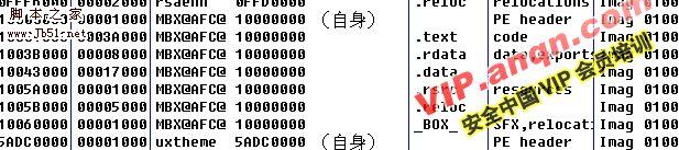 发现有MBX@XZXXXS之类的名称,而且有_BOX_区段名,可以肯定这个就是被捆绑并参与程序运行的文件(DLL),