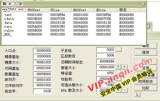 现在用PE编辑,把DUMP下来的DLL 的数据基址和大小,改为这个DLL.reloc区段的RAV的大小.