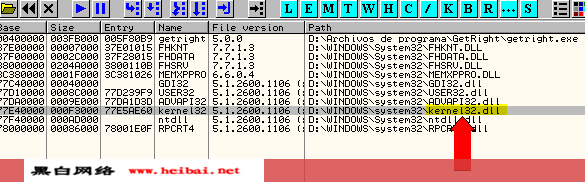 当GETRIGHT.exe正在进行转储时,这个问题变的很容易.然后选择VIEW-MEMORY你将看到哪些入口指向了dlls而哪些则指向了错误的地方.
