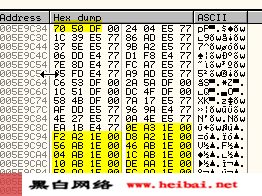 让我们看一下转储(DUMP)窗口.在转储(DUMP)窗口右击,选择"前往 表达 5E9D94".