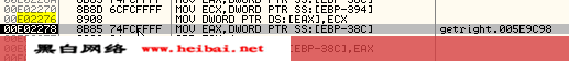 CALL [xxxxxx] 或者 JMP [xxxxxx] 间接地带有它们即将跳往IAT中某处的内存地址值.在这张图中,我们可以看到 CALL [5e9d94]. 那意味着这个call将要前往这个内存地址,实际上就是IAT表的入口值.在它的右边我们可以看到"kernel32.Getversion" (黄色). 这就意味着这是一个可以在IMPORT RECONTRUCTOR上被找到的正确的入口值.