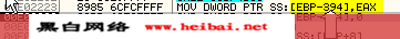 你可以看到在前面一行保存着错误值.后面指出这个错值从[ebp-394]处来.所以在转储窗口中选择GOTO EXPRESSION EBP-394. 那儿你将会看到这个值.下BREKPOINT HARDWARE ON ACCESS.