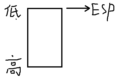 当向堆栈中压入数据时,ESP会向上移动,使用PUSH指令,ESP变化为:ESP - 数据位数。