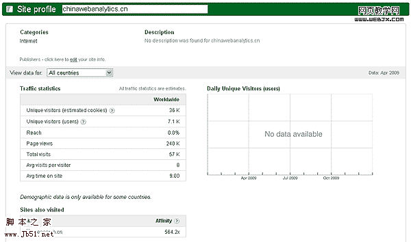 Google Ad Planner是我在研究陌生网站流量上最喜欢的工具,倒不是因为它是为在线广告媒介服务的,而是因为它有直接的数据,而且涵盖了那些已经相当长尾的网站——例如我的这个网站:www.chinawebanalytics.cn。
