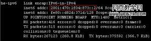 把这些命令在你的VPS上执行下。测试下看设置成功没,ping6 he.net,如果跟下图差不多,就说明配置成功: