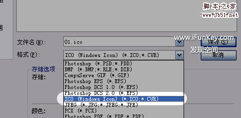 之后再保存的时候就会有ico这个选项了,这样不但可以制作透明样式的网站图标,而且制作出来的ico边缘非常光滑,比在线制作的精美很多。工具准备好了,开始制作。