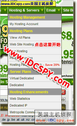 2。点击hosting&services,打开下拉菜单,点击Web Site Hosting进入主机方案列表。操作过程如下图所示: