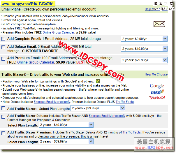 3。进入主机方案列表以后,选择相应的主机方案和付款周期,推荐选择一年付款,价格便宜,一个月内不满意可以退款,不用担心主机质量。下拉列表选择操作系统。PHP程序推荐linux,ASP ASP.net选择windows。