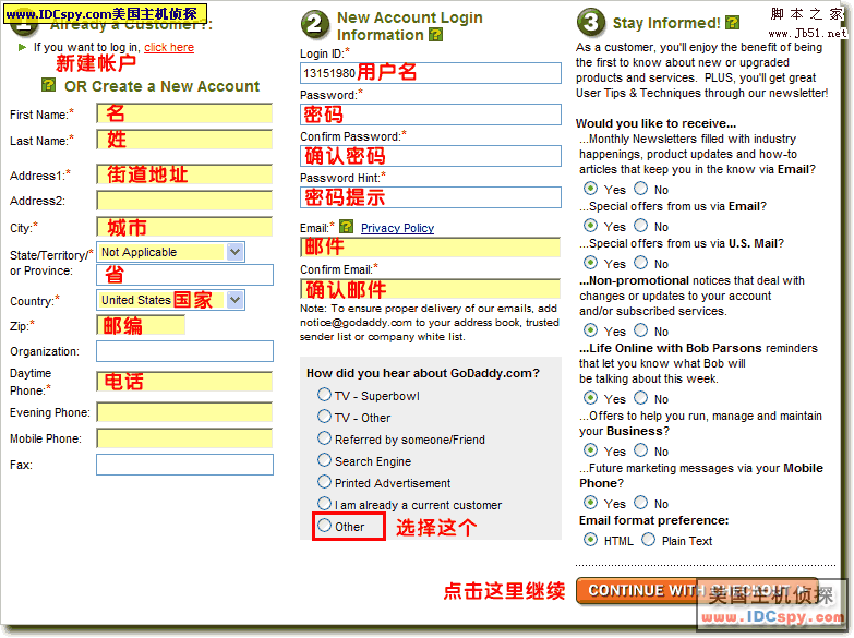 10。在注册新用户页面中按照下图提示输入帐户信息,然后点击右下方的按钮进入下一步
