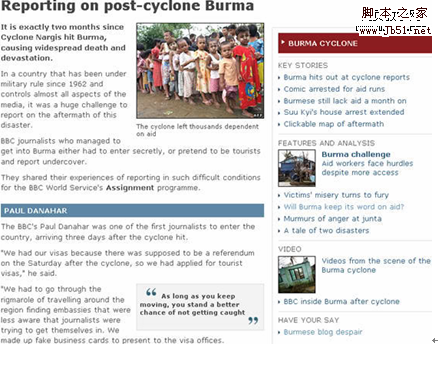 很多方法可以定位你的访客,最重要的一点原则就是使链接高度可视化并且和当前的页面相关联。让我们来看看BBC(英国广播公司)新闻网站,我一直都很钦佩它出色的互联互通的做法。下面是一个单独故事页面的屏幕快照,注意看看侧边栏的链接: