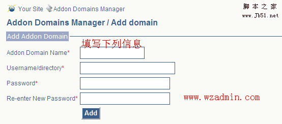 - Addon Domain Name:你要添加到账户的域名