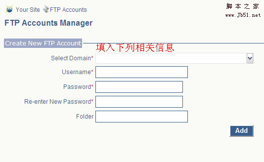 进入FTP Accounts Manager,单击And New