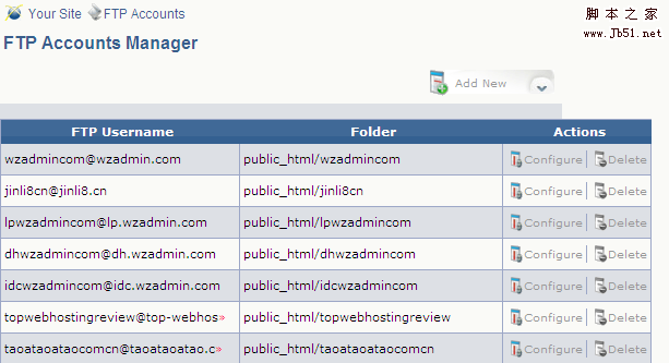 注意:删除FTP账户后,对应的目录不会被删除,如果需要,自己可以手动到File Manager里删除