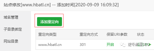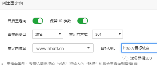 第四步:新增重定向,保留URL参数可设置关闭或打开( 301 需要保留),两者区别如下: