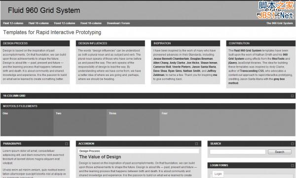 Fluid 960 Grid System的模版是根据Nathan Smith之前的作品而创建的。即960 Grid System:传承了MooTools和jQueryJavaScript libraries的效果。