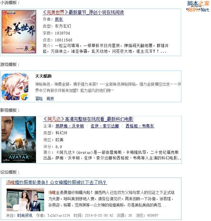 只有您以结构化的形式提交您的站点数据,才能够正常使用小说、游戏、影视、论坛等行业模板: