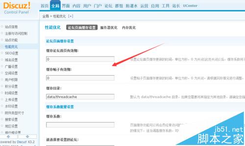 9、进入-性能优化->论坛页面缓存设置->缓存论坛首页有效期/缓存帖子有效期/缓存系数全部为0。