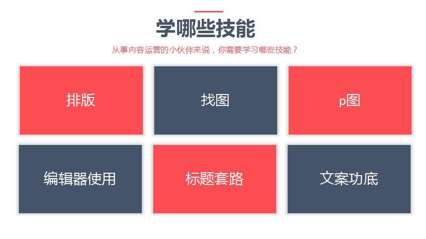 内容运营的技能,这个至关重要,内容运营最看重的就是技能,在你应聘内容运营时,很多面试官也会问到你会什么技能,包括ps、office、编辑器、文案功底如何,这些都是技能,也是做内容运营的必备技能!具体如何学习我们放在下面说。