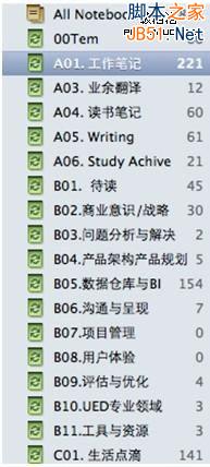 建立了你的主题关键词后,evernote的笔记本也可以建立相应的名称,以便于你归类不同的资料、文档、图片等。Evernote会自动按照笔记本的数字及字母顺序排序,所以在数字前加字母ABC就帮助我形成了两级的排序。同时,字母ABC又可区分3个大的种类。