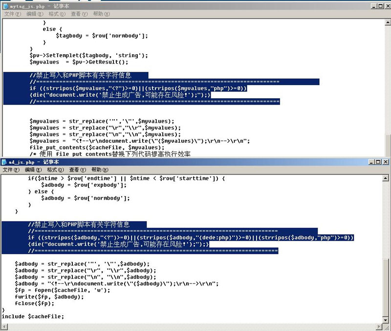 此补丁,是防止广告里带PHP脚本并写入文件!