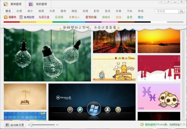 搜狗壁纸中壁纸的画面非常漂亮,但再漂亮的事物看长了也会产生视觉疲劳。怎样让自己既能看到漂亮的桌面又不会产生视觉疲劳呢?