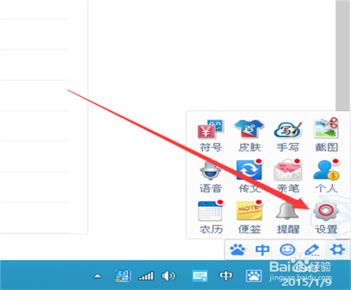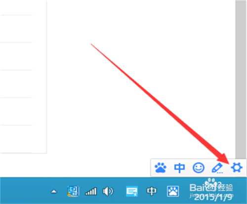 1、打开网页,点击某处能输入文字的地方,调整到百度输入法,屏幕右下角就会出现百度输入法的条,点击最右侧的设置按钮。
