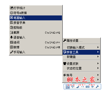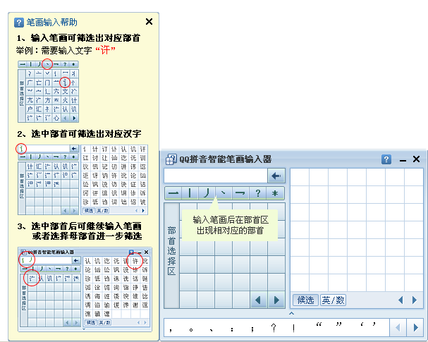第三种,在右下角QQ拼音输入法中,右键——“拼音工具”——“笔画输入”。里面可以简单查到并输入偏旁部首。方法比较麻烦,不多介绍了。如图: