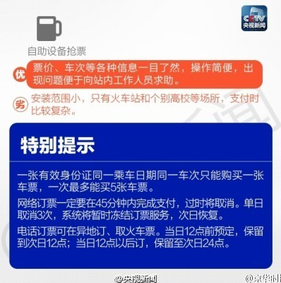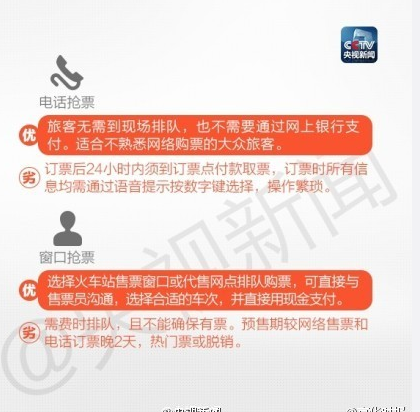 抢票需注意在网络上订票和电话购票的小技巧,请看下图注意事项。