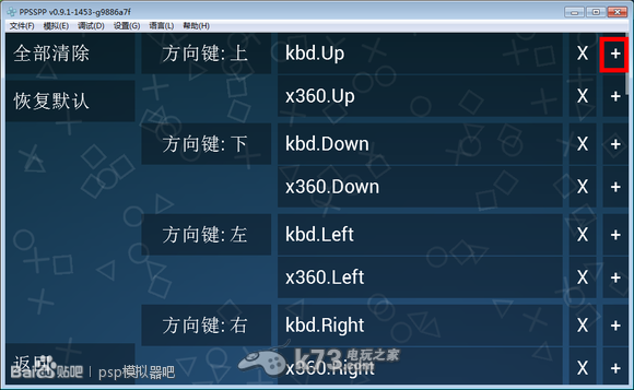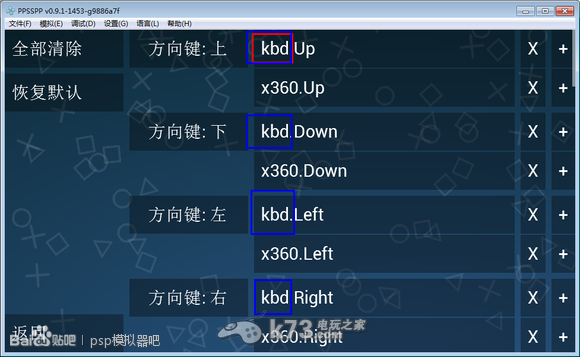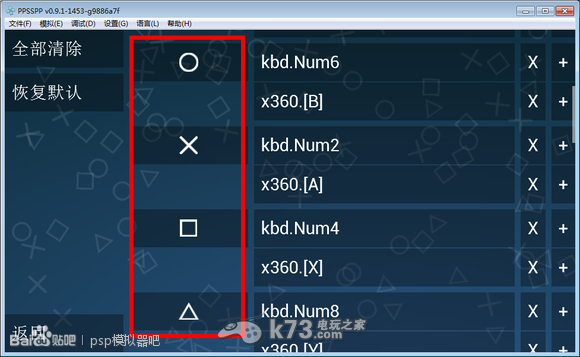红框里面的就是psp按键一般来说 psp游戏只要把上面所有键位都设置好了游戏的操作就没有问题了