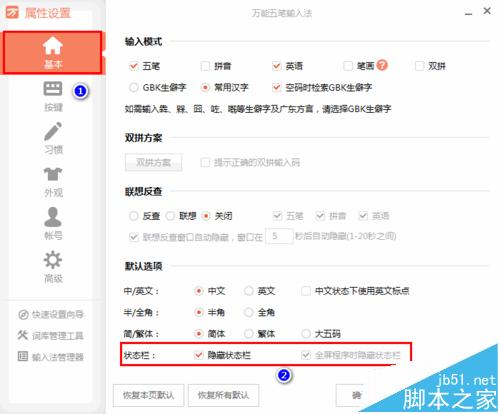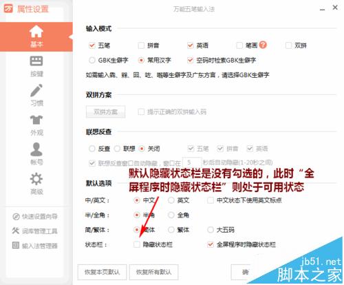 那么,要怎么做才能永久隐藏万能五笔输入法的状态条呢?