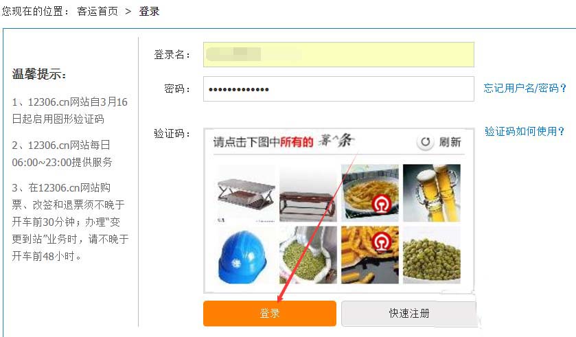 3、在12306登录页面上输入用户名和密码,然后点击登录,如下图所示。