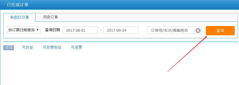 5、在未出行订单选项卡里,可以根据时间和订单人姓名进行查询,如下图所示。