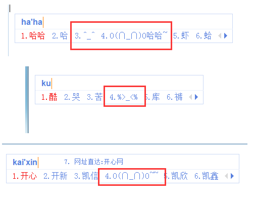 4、另外我们还可以在输入框中输入“haha”、“ku”、“kaixin”等字眼的词语,也能打出一些表情符号。